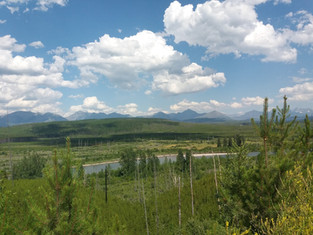 We did not reach Helena that day. The road we took after the going-to-the-sun-road led through the Blackfeet Indian Reserve and miles and miles of nothing. Rick got very tired so we decided to stop at Wolf Creek which turned in Wesps Creep. We hate those bugs! And they kept chasing us but we saw pelicans.
