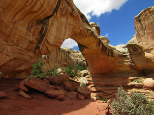 Capitol Reef National Park is situated in the heart of red rock country and is filled with bizar cliffs, canyons, domes, natural bridges and Indian petroglyphs on rocket walls. We spent two nights on a small camping in front of one those spectacular red rocky mountains.